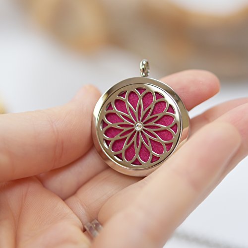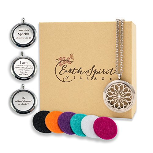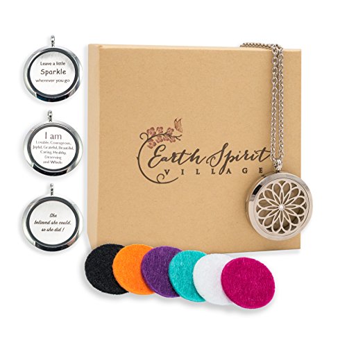 - GREAT AROMATHERAPY NECKLACE GIFT SET – Everything you need; includes a beautiful locket with chain, 6 colored diffuser refill pads, 3 interchangeable inspiration charms, packaged in a beautiful gift box