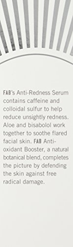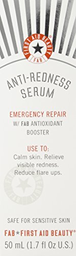 -. Binding : Health and Beauty -. Brand : First Aid Beauty -. Department : Beauty -. EAN : 0851939002050 -. Feature : FAB Anti-Redness Serum is for anyone with facial redness, whatever the source. / Diminishes visible redness, calms skin and helps to prevent flare ups. / No Parabens, Harsh Chemicals or Colorants. / Safe for Sensitive Skin. / Deng the skin against free radical damage -. Label : First Aid Beauty -. Manufacturer : First Aid Beauty -. Model : 205UK -. MPN : 205UK -. PackageQuantity : 1 -. PartNumber : 205UK -. ProductGroup : Beauty -. ProductTypeName : BEAUTY -. Publisher : First Aid Beauty -. Size : 1.7 oz -. Studio : First Aid Beauty -. Title : First Aid Beauty Anti Redness Serum-1.7 oz. -. UPC : 851939002050