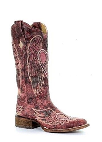 Binding : Apparel Product Description The Wing and Heart design by Corral Boots is one of our all time favorite styles! They have re-done the red wing and heart boots, and this new style is so much fun! The distressed red leather is amazing, and we love the ombre` effect, where the colors fade in and out of each other. You'll see a pop of turquoise, which looks gorgeous against the red leather. We love all things boho country, and these Wing and Peace Sign Heart Corral Boots remind us of peace, hope, and love. 0
