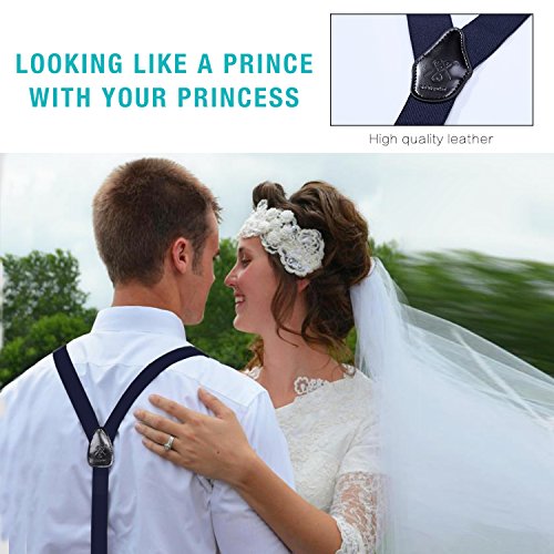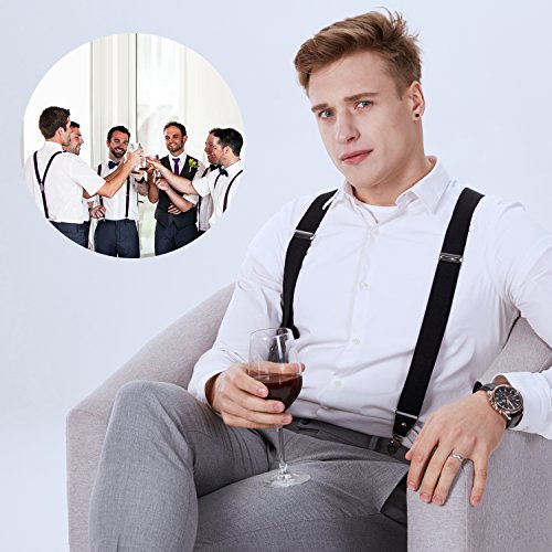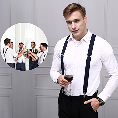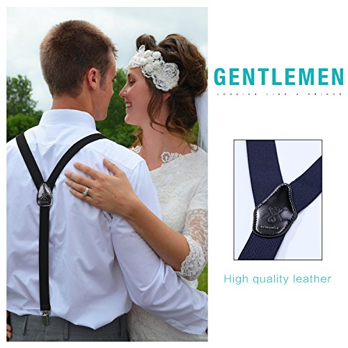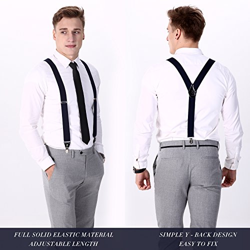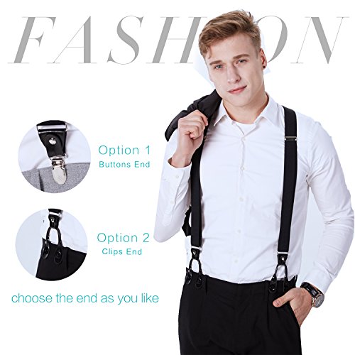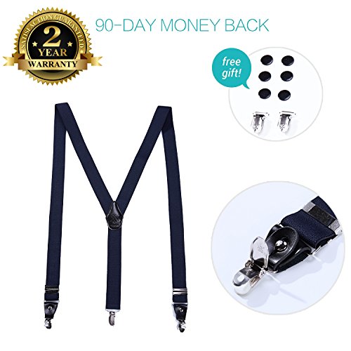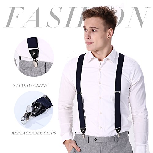 ?Package for our men's suspenders: ●①1×mens suspenders ●②2×clips for replacement(Navy Blue) 2×clips for replacement and 6pcs black buttons (Black) ●③1×Gift box packing for mens suspenders