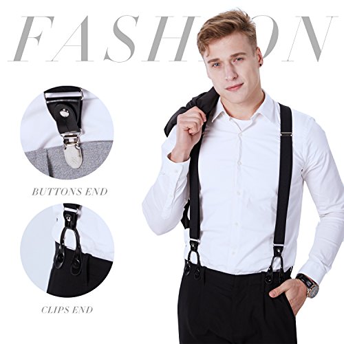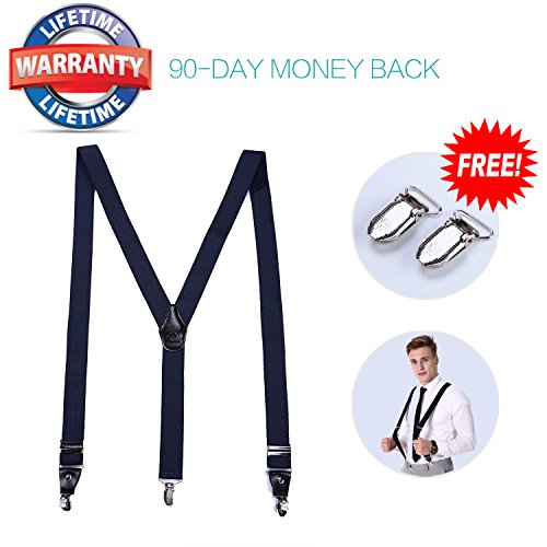 ●①Strong Clips Easy to fix. Our men's suspenders to avoid complains for the clips which easily break, so we improved and made special strong heavy duty metal clips, inside with stainless steel shrapnel, not steel shrapnel, that's why the mens suspenders can hold up well and tightly. No need worry your pants falling down again. Additional, two more free replaceable clips comes as free gift