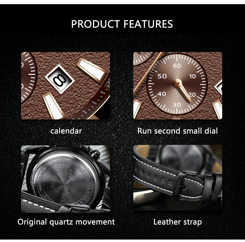type 10:Male Clock Leather Strap Wristwatch Luxury Male Clock Quartz Watch