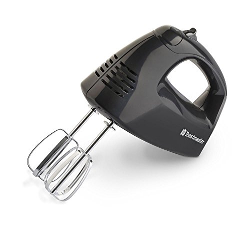 The TM-201HM 125-Watt Hand Mixer from Toastmaster provides the power and adjustability you need to fold, mix, blend, and beat ingredients perfectly. The classic mixer comes with high-quality chrome plated beaters that are dishwasher safe. Thumb control enables you to adjust speed seamlessly as you mix. A beater ejection control system enables you to remove the beaters safely. The TM-201HM 125-Watt Hand Mixer carries a 1 year manufacturer's warranty.Feature