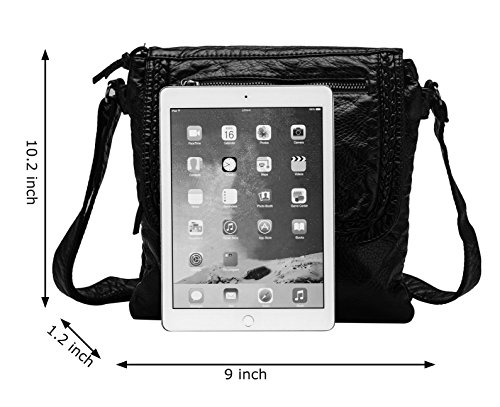 -. Feature : Dimensions:9.1"W x 10.2"H x 1.2"D,adjustable Shoulder strap;Top zipper closure. / Material:High quality synthetic washed leather with fabric lining,super durable and lightweight,Washable and waterproof / Function: can be crossbody Bags,you can also Satchel,tote and shoulder bag / Structure:Front exterior pocket with flap over cover and snap on closure that can hold a smart phone. One front and one back zippered pockets for easy access / Applications:Casual,Travel,School,Shopping,Fashion,Gym,Hiking for Women