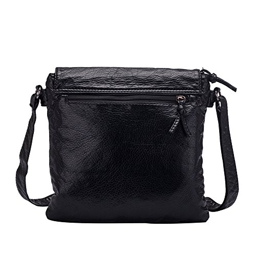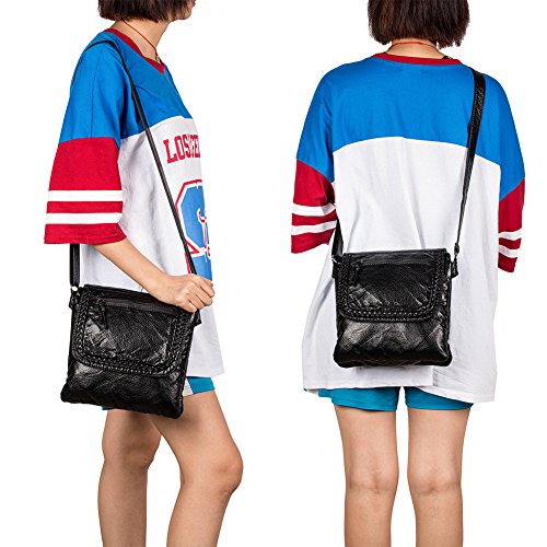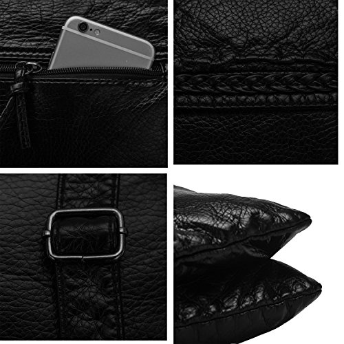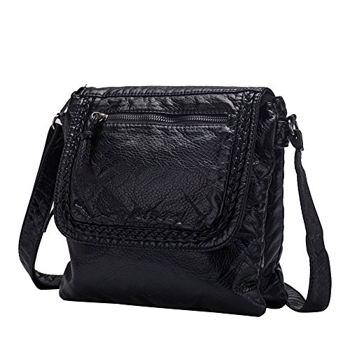 -. Title : Soft Washed Leather Cross body Bag for Women Purses Multi Pockets Girls Shoulder Bag Handbags Black