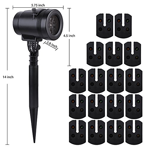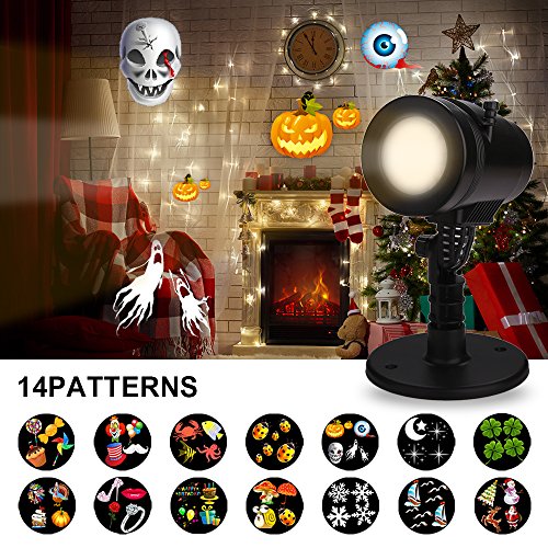 - ★2017 NEWEST LIGHT PROJECTOR - This LED Projector Lights is improved Version , it has Bright Led and 14 Pattern Led Moving Landscape Spotlights , Pumpkin , Skull Head , Skeleton , Santa , Snowman , Snowflake , Christmas Tree , ,Candy , Cake , Clover , Ocean , Butterfly , Ladybug , Night Star , High Heel , Pigeon , Maple Leaf and so on - Ideal for Halloween Christmas Lights Outdoor Decor ( Interior and Exterior Walls )