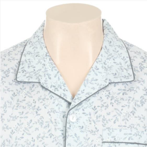 남성 60수 주자 원단 나뭇잎 프린트 실켓 면 남성 잠옷 입니다.부드러운 실켓 면 소재로 촉감이 매우 좋으며 면 100 소재 입니다.바이어스 테두리로 더욱 고급스러워 보이는 제품으로 선물용으로 인기가 좋습니다.잔잔한 패턴이라 데일리용으로 추천합니다.