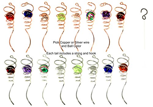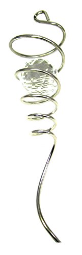 Shipityourway 11" Gazing Ball Spiral Tail Cyclone Wind Spinner Stabilizing Accessory Optical Illusion Yard Twister with String and Hook (Silver Wire, Crystal Glass Orb)