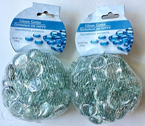 2 PACK - Clear Glass Gems - Vase fillers, Arts & Crafts, Mosaic, Table Confetti, etc. - 1/2"-3/4" Diameter - 1.75 lbs - Approx. 170 Pieces
