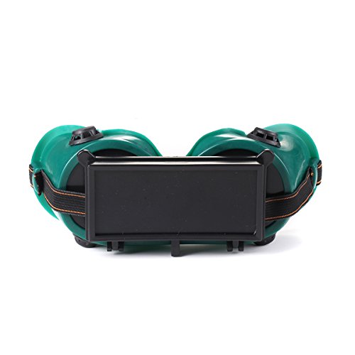 -. Feature : can be turned up front cover design, more easy to observe the operation, a round and square clamshell, to meet the needs of more people / the use of polycarbonate lens welding protective glasses, effectively blocking up to 99.9% UV and 98% of the infrared / 2" dark green flip up lenses with anti-scratch coating, can effectively extend the lens life; Vinyl frame, fit better, wear more comfortable / Vents for adequate circulation design to improve comfort, A must have for welding, torching or cutting! Goggles protect your eyes from sparks and flying debris. / Elastic strap adjustable, more practical and convenient