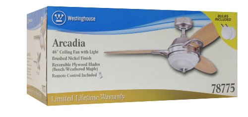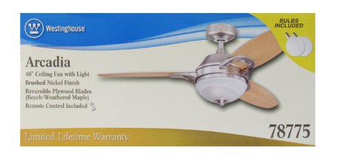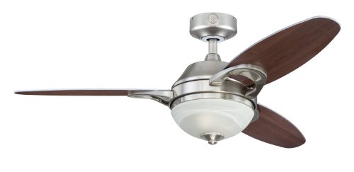 Two-light 46-inch reversible three-blade indoor ceiling fan for rooms up to 144 square feet (12 by 12 feet)
