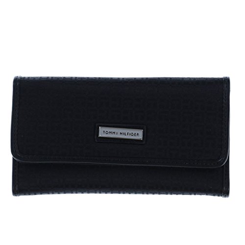 New Tommy Hilfiger TH Logo Wallet & Checkbook Cover 2 Piece Black Duplicate Flap