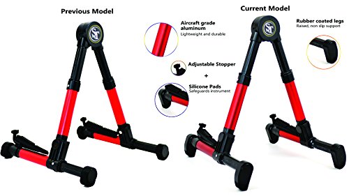 - Feature : Guitar stand from Symphony Tech® Premium folding stand recommended for most acoustic & electric guitars, violins, ukuleles, bass's, banjos and mandolins / Adjustable to safely fit most sized string instrument / Stable, so you don't have to worry about your instrument tipping over / Lightweight and Portable - Folds neatly to 10.5 x 3.5 inch -so its east to take along and travel with / Soft silicone pads protect your valuable instrument