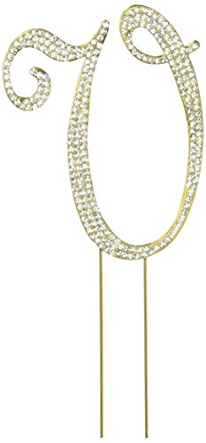 Unik Occasions Sparkling Collection Crystal Rhinestone Monogram Cake Topper - Letter V, Large, Gold