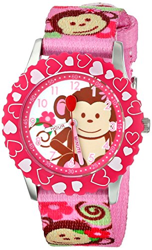 Round Time Teacher Stainless Steel Watch with monkey on dial and Red Balloon shaped seconds hand.