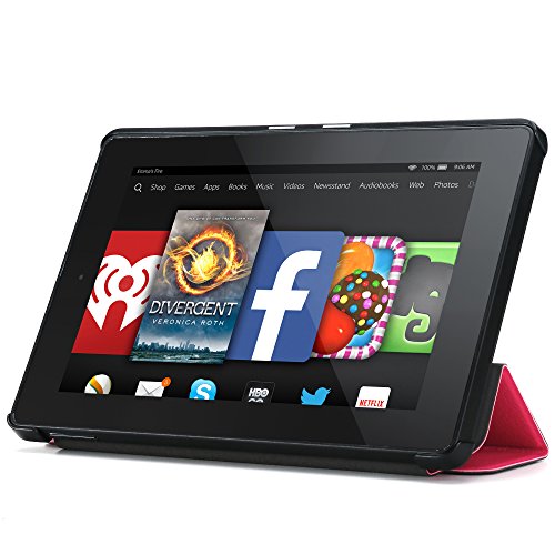 Fire HD 7 (2014 Model) Case - Poetic Fire HD 7 Case [Slimline Series] - [Lightweight] [Ultra-slim] PU Leather Slim-Fit Trifold Cover Stand Folio Case for Amazon Fire HD 7 (2014 Model) 4th Gen Only - Magenta , Will Not Fit Fire 7" Display 5th Generation (2015 release) (3 Year Manufacturer Warranty From Poetic)