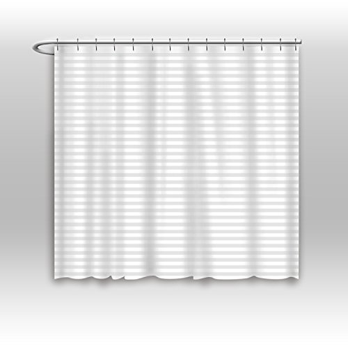 Hotel Quality Mildew Resistant Washable Fabric Shower Curtain Liner -108 x 72 Extra Wide-, Water-Repellent, Elegant White Tonal Damask Stripe, Eco Friendly & PVC-Free