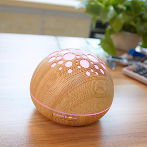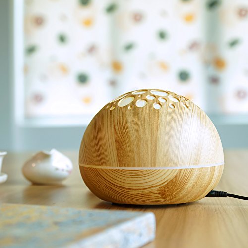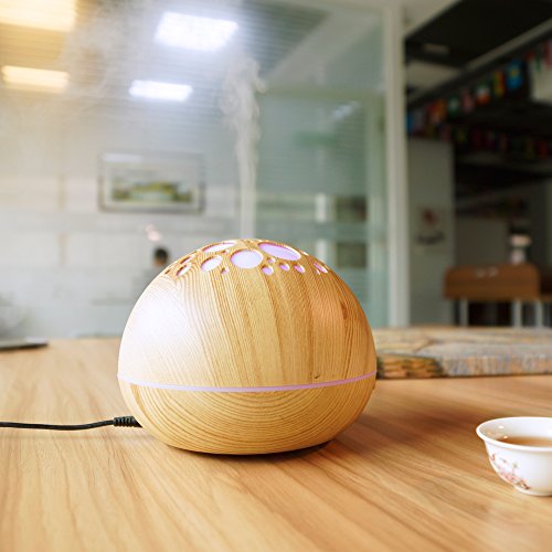 MOSUN 300ml Cool Mist Humidifier and Aromatherapy Essential Oil Diffuser Ultrasonic with LED Night Light and Time Setting for Bedroom Babes Room Office Yoga Spa (light wood grain)