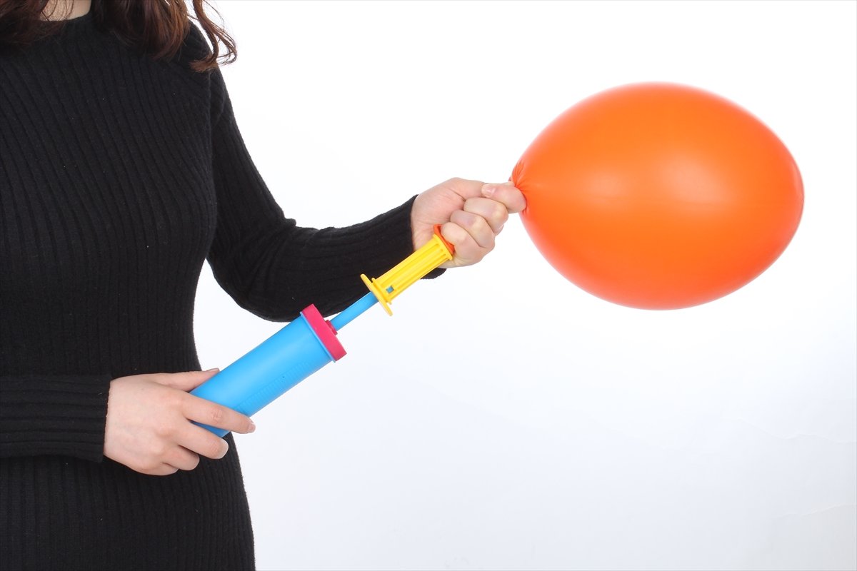 Since it is difficult to inflate big balloons with your mouth, we have a manual pump from the beginning.