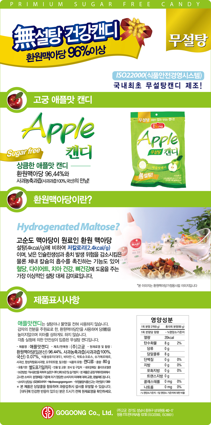 - 식품의 유형고궁 무설탕애플맛캔디
