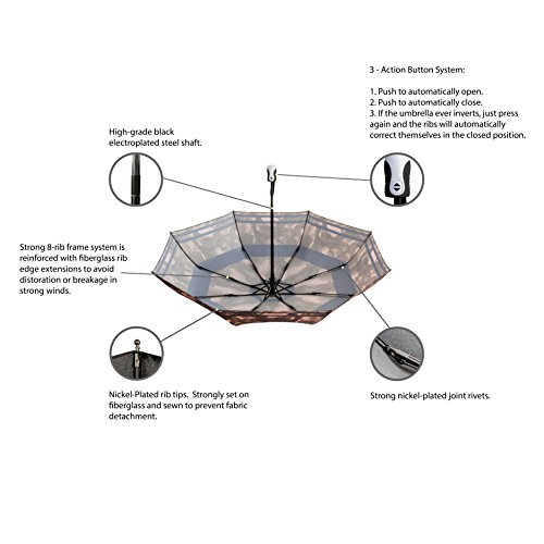 -. Title : ☂ U-Brella Travel Umbrella Auto Open Close. Strong Frame - Fiberglass Reinforced 8-Rib Windproof Construction Technology. Lightweight, Compact, Anti-Slip Rubber Handle.