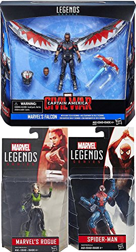 -. Feature : Marvel Comics Detailed Legend Series Action Super Hero Figures 3-pack Marvel Legends 3.75" highly detailed and sculpted / Marvel Legends Series Falcon with Flight Tech and Redwing, 3.75-Inch / Falcon Soars through the skies with his redwing drone at the ready / Marvel Legends 3.75" Spider-Man Iconic figure with classic design - The figure is highly detailed and sculpted with several points of articulation / Rogue is a mutant who formerly possessed the ability to absorb the memories, abilities