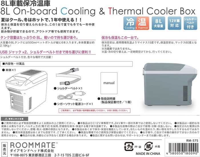 | 商品説明 | ●ペットボトルや350ml缶が6本収納可能 ●2つのドリンクホルダー付き ●ストラップ付きで肩掛けでの持ち運びが可能 ●アウトドアやお出かけ時に大活躍 ●電源:DC12V ●温度設定範囲:温・冷切り替のみ、10~60度 ●材質:ABS ●電源:DC12V ●消費電力:保冷時約45W 保温時約40W ●質量:約2.2㎏ ●保温能力:最大60℃ ●付属品:取扱説明書、DCケーブル、ベルト ●コード長さ:200㎝ ●庫内サイズ:約20×14×24㎝ ●本体寸法:約W 38×D 19.5×H 29㎝ ●質量:約2.2㎏ ●沖縄・離島への配送料金は別途見積もり(配送不可の場合も有)となりますのでご了承ください。 ●JANコード 4580050180090 |