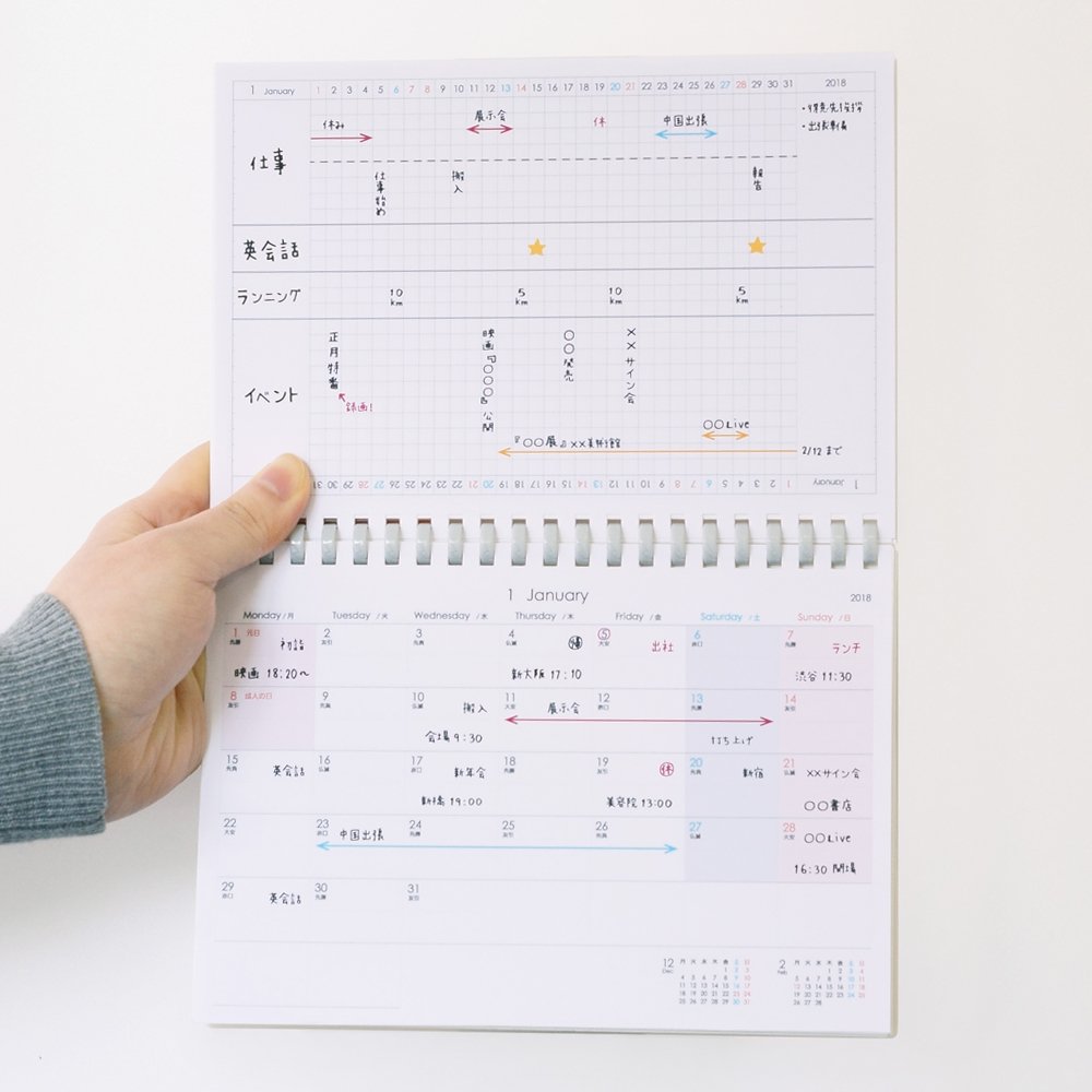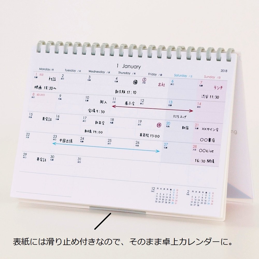 Diary, desk calendar, notebook with this one volume! Because the cover is nonslip rubber, it can be used as a desktop calendar.