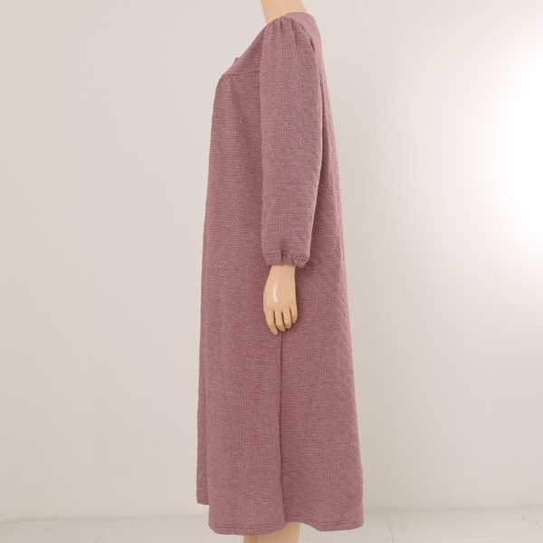 은은한 자캬드 나염무늬가 세련되며 클래식해서 누구에게나 잘 어울리며 앞요크와 셔링 디테일이 활동성을 편안하게 해주는 가운.
