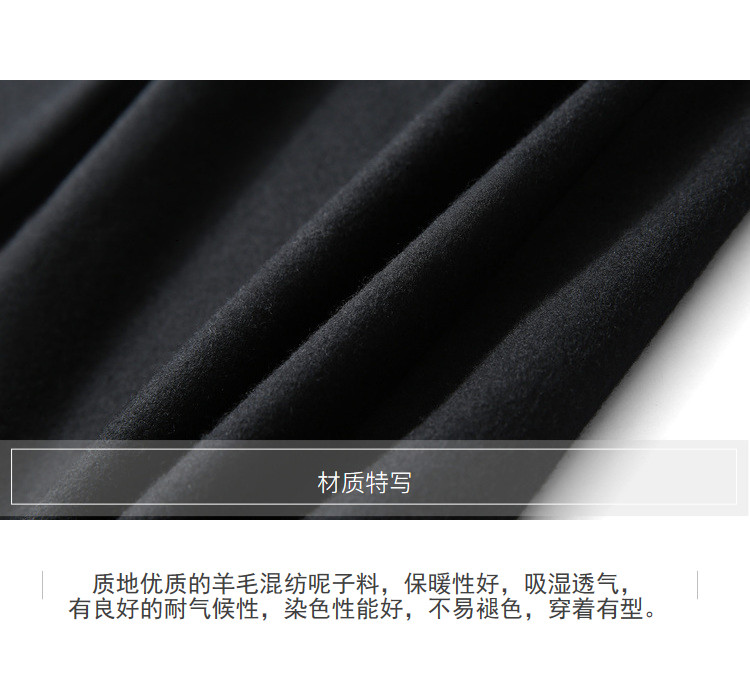 | 面料成分: | 驼色:面料:52%聚酯纤维 48%羊毛 里料:100%聚酯纤维 黑色:面料:51.1%聚酯纤维 48.9%羊毛(含微量其他纤维) 里料:100%聚酯纤维 |