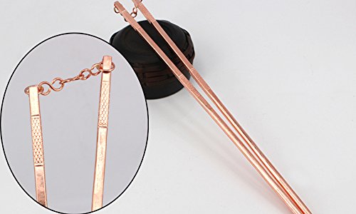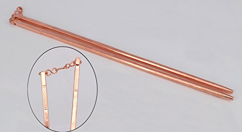 Pure Copper A pair of Chopsticks Handmade 9" Long With Storage Travel Case - Chain At The Chopstick Top