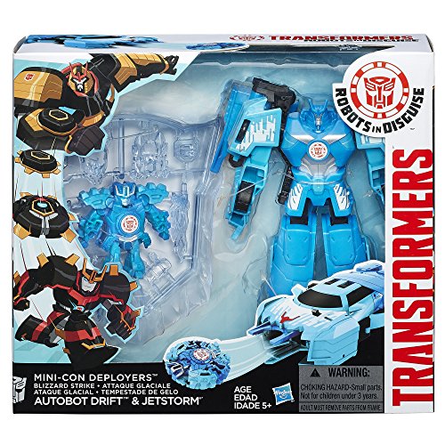 -. Feature : Awesome figure pack includes Mini-Con Deployers figure and Mini-Con figure / Mini-Con Jetstorm figure converts in 1 step from covert mode to robot mode / Mini-Con Deployers Autobot Drift figure converts in 7 steps from robot mode to muscle car mode and back / Scan Autobot Drift figure's badge to unlock the character in the Transformers Robots in Disguise app (device not included) / Includes Mini-Con Deployers figure, Mini-Con figure, 8 accessories, and instructions.