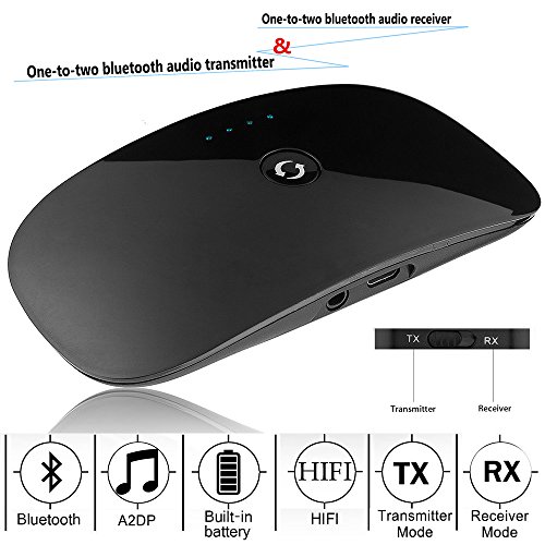 Fozela Simple Design Bluetooth Audio Receiver and Transmitter 2-in-1, Wireless Bluetooth Adapter with 3.5mm Stereo Output Connect for PC, iPod, TV, Speaker, Headphone, MP3/MP4, Rechargeable Battery