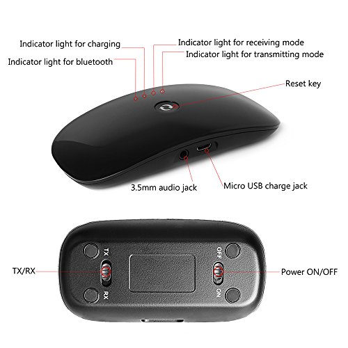 1,Fozela wireless Bluetooth 2-in-1 adapter depends on its One-Touch button, easily to shift between TX mode(transmitter) and RX mode( receiver)