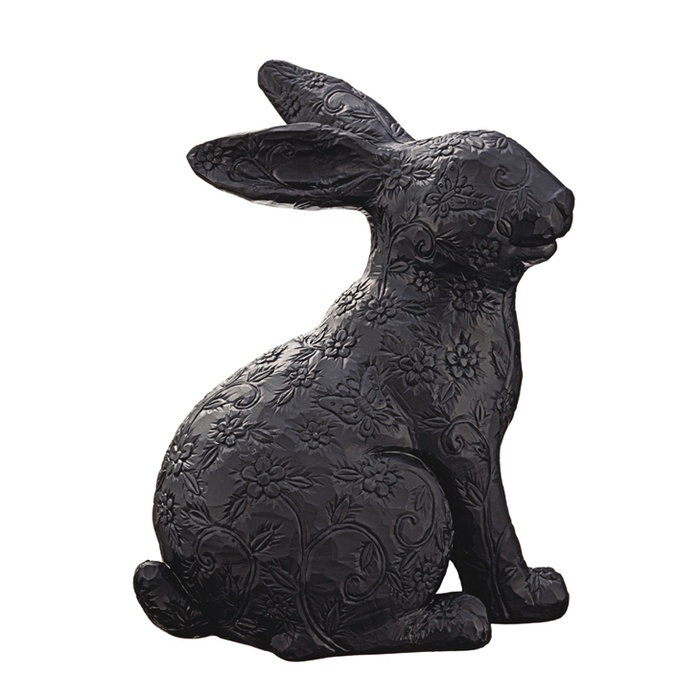 본체에 식물의 조각함 모양이 들어간 토끼의 오브제.