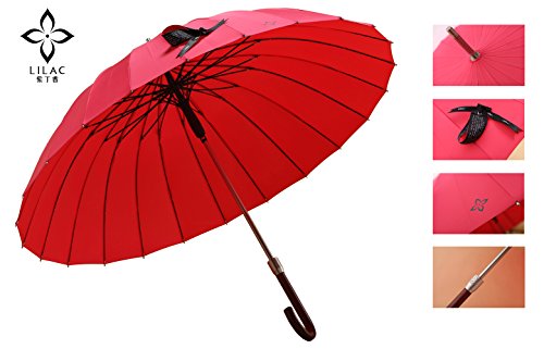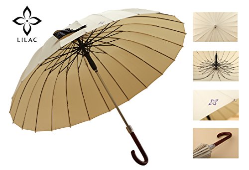 -. Brand : Lilac Umbrella -. Department : womens -. Feature : DESIGN OF MASTER: Elegant design of wooden handle with Lilac Logo, plus sleeve Loincloth.Inheriting from the tradition art. It is the masterpiece of craftsman. / DURABLE: Pearl nickel-plated aluminum alloy shaft with 30% weight decrement and increased compression strength, assembled with Patented 24 fiberglass ribs, high windproof ability is up to 103MPH, avoiding the umbrella flipping inside out and maintaining the elegant rounded shape. / CONVENIENT: Auto open with one touch elegantly. It is ideal for the present, business professional, golf, or everyday life. / WATERPROOF and ANTI-UV: Made from 300T Polyester Pongee Fabric with DuPont Teflon and Pearl Glue coating, Waterproof like the lotus leaf and UPF50+ UV protection. / GUARANTEED FOR LIFE: Lifetime Replacement Warranty -. ProductGroup : Apparel -. ProductTypeName : LAGE -. Title : Lilac 47-Inch Auto Open Stick Umbrella for Women, masterpiece of craftsman