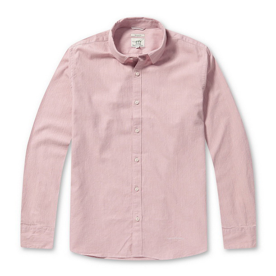 - 톤온톤 컬러의 은은한 헤링본 조직을 적용한 남성 셔츠.