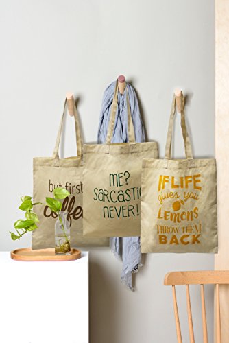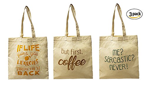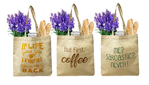 Earthwise Organic Cotton Reusable Grocery Bag Shopping Totes w/3 Cute and Funny Prints (3 Pack)