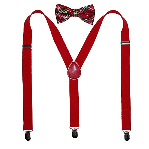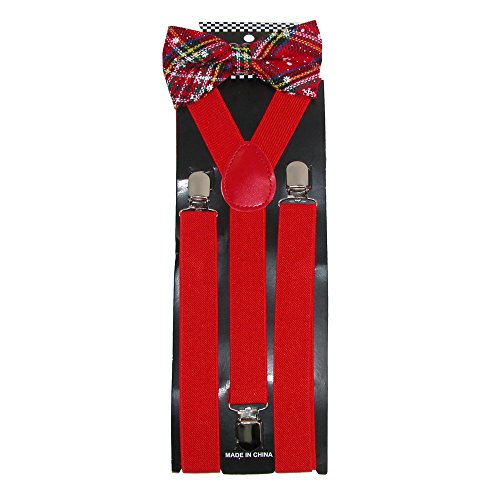 (CTM)/Accessories/Suspenders Cummerbunds/DIRECT FROM USA/CTM Men's Holiday Plaid Bow Tie with Solid Suspender Set