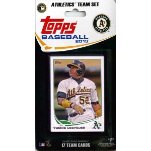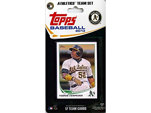 [Product Information]- This is a 2013 Topps Oakland Athletics Factory sealed special edition 17 card team set; cards are numbered OAK1 through OAK17 and are not available in packs. Players included are Yoenis Cespedes, Josh Reddick, Bartolo Colon, Ryan Cook, Tommy Milone, Jarrod Parker, Seth Smith, Josh Donaldson, Brett Anderson, Jed Lowrie, Grant Balfour, Chris Young, A.J. Griffin, Scott Sizemore, Derek Norris, Brandon Moss and Coco Crisp.