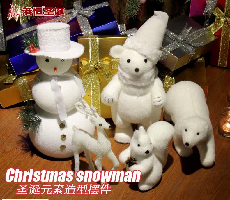港恒圣诞节装饰品 白色植绒圣诞雪人麋鹿小熊雪景布置装饰摆设品