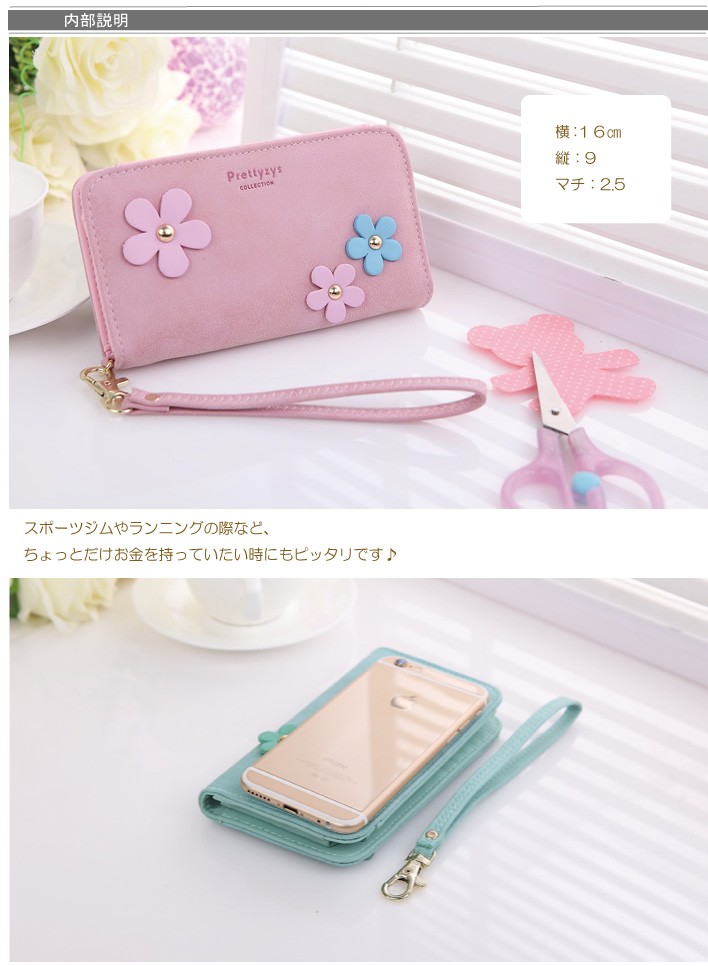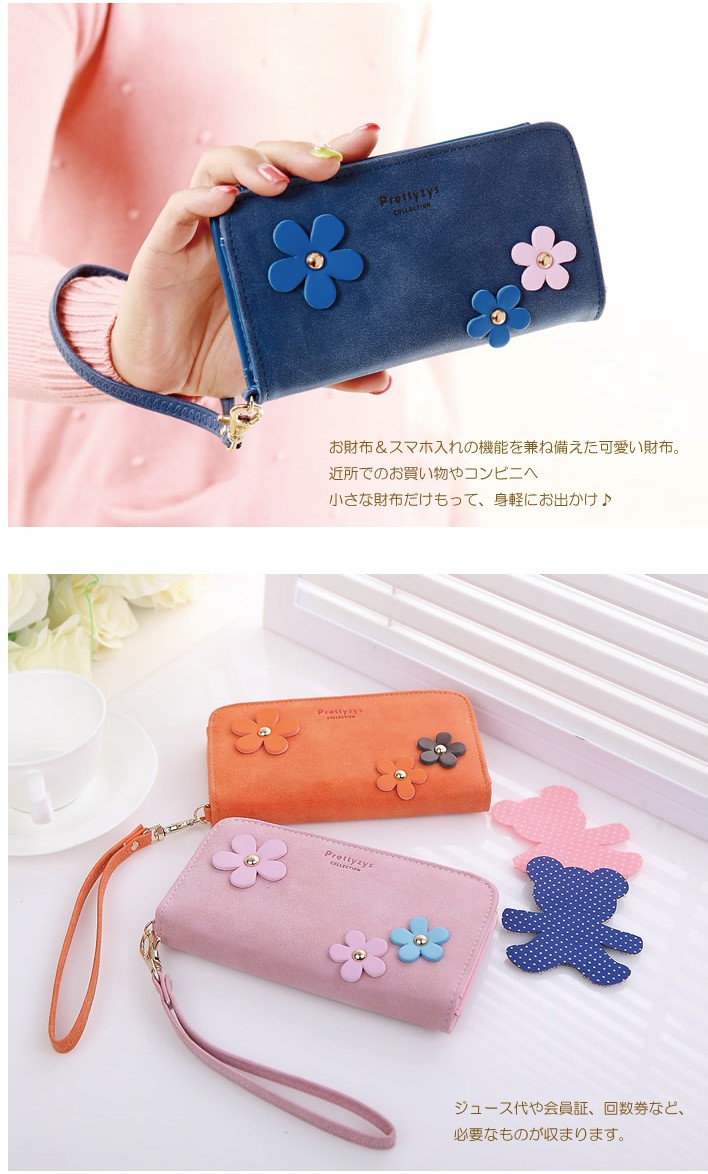 お財布&スマホ入れの機能を兼ね備えた可愛い財布。 近所でのお買い物やコンビニへ 小さな財布だけもって、身軽にお出かけ♪小さなバッグに入ります。普段使いはもちろん、パーティやお呼ばれのときに★