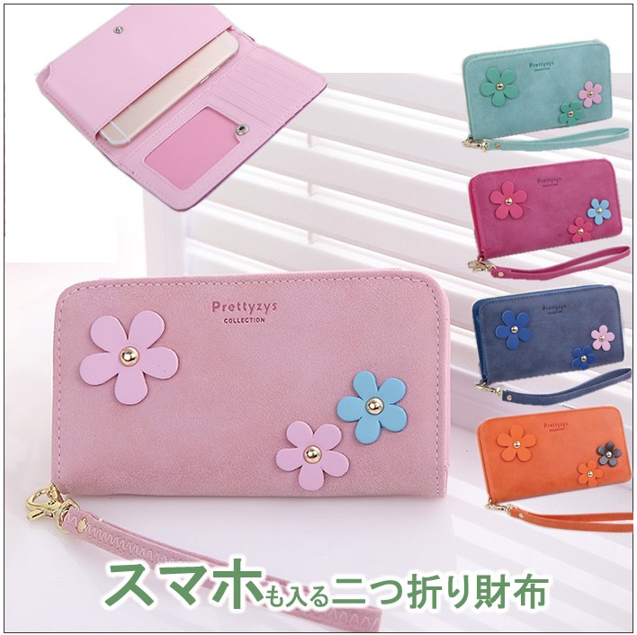 小花モチーフが素敵な薄い財布 スマホもお札もカードも小銭も入る便利な財布(中)