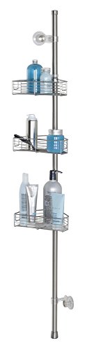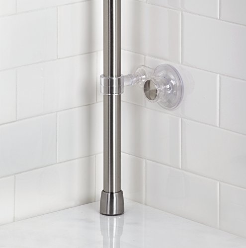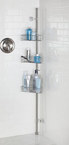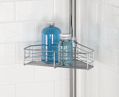 mDesign Standing Bathroom Shower Caddy Station for Shampoo, Conditioner, Soap - Corner, Brushed Stainless Steel