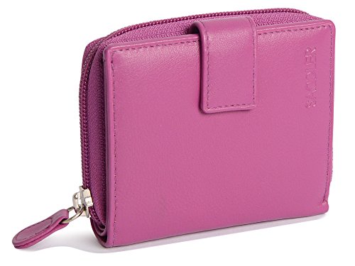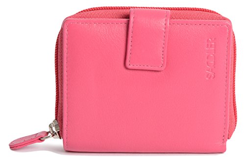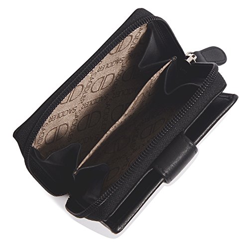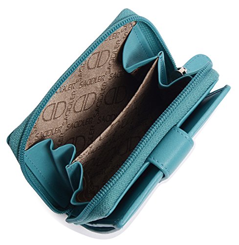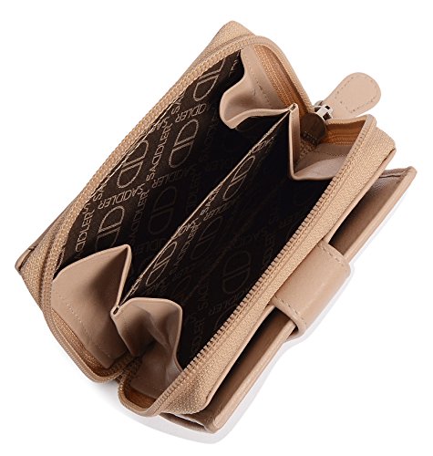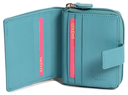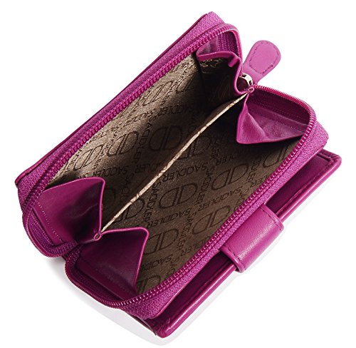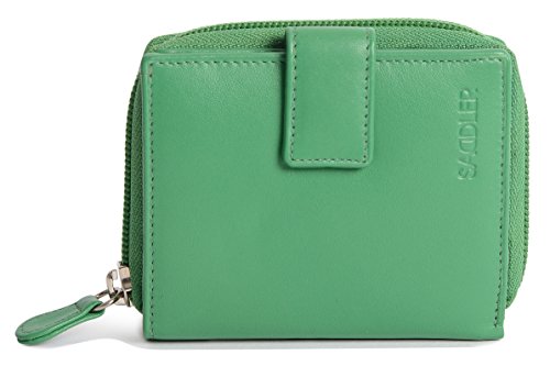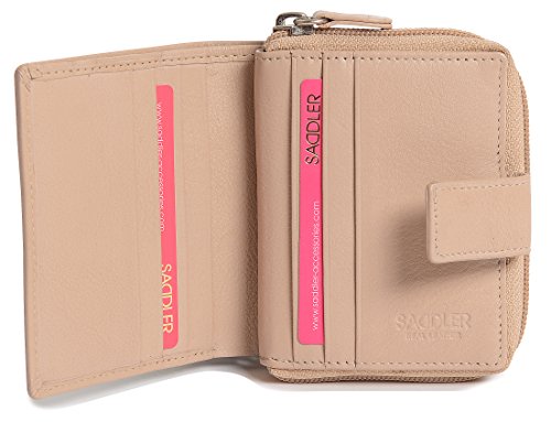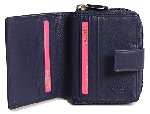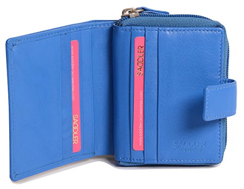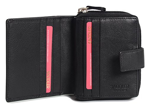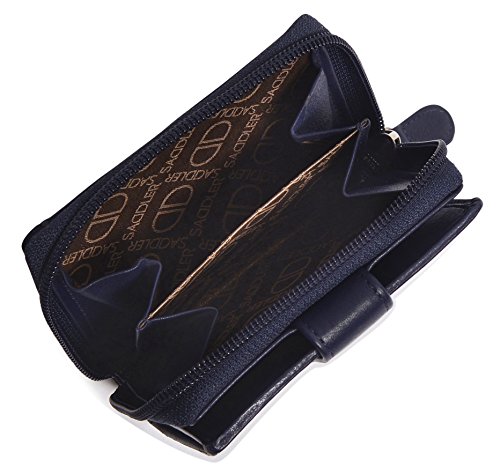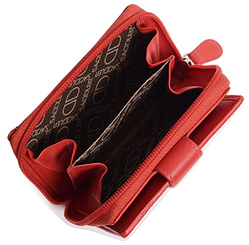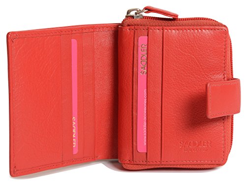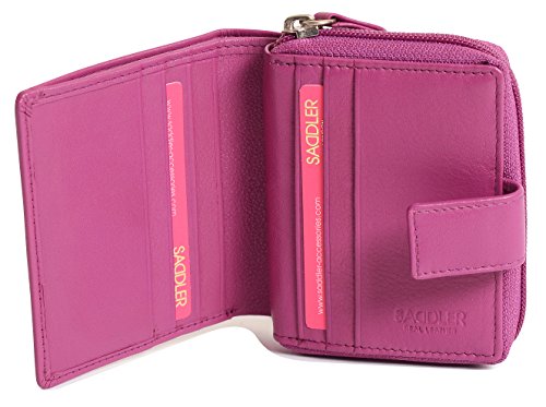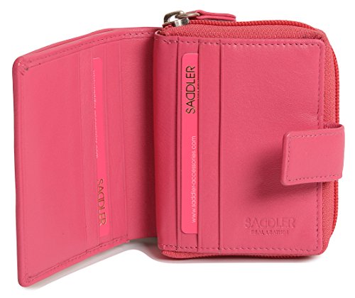 Binding : Apparel Product Description SADDLER is the quintessentially British Leather Goods Brand that traces its heritage back more than 25 years. Every SADDLER piece combines the finest leathers handcrafted by experienced artisans employing traditional leather skills with creative design and eye-catching colour that makes any SADDLER piece an ideal real leather gift. The SADDLER Essence Collection bears all the hallmarks of excellence across a comprehensive range of ladies accessories destined to impress those with the most discerning tastes. The outer flap of each piece is distinctively embossed with the SADDLER logo and the interior is lined with SADDLER monogrammed woven jacquard lining. As a finishing touch the Saddler Essence range is delivered to you in its own innovative gift packaging. This compact ladies purse and note case has a large bi-fold note section to the front which is secured with a snap button tab closure. Inside there is storage for 6 credit cards and one slip in pocket under the left side credit card panel and a single section full length slip in note section (16cm x 9.5cm). Opening the 3 way zipper and a very roomy 2 section coin purse is revealed and to its rear is a large slip-in pocket with a transparent ID window. 0
