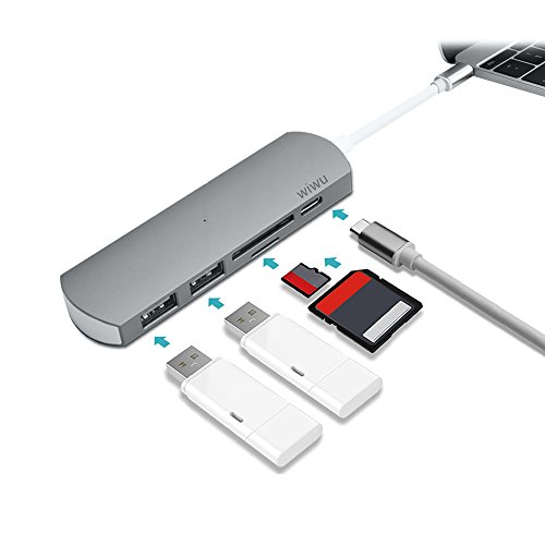 -. Title : WIWU USB C Type C Hubs 5 in 1 Aluminum Convertor, 2 USB 3.0 Ports, SD Card Reader, TF Card Reader, PD Smart Charging For MacBook/ MacBook Pro ( 2016-2017 )