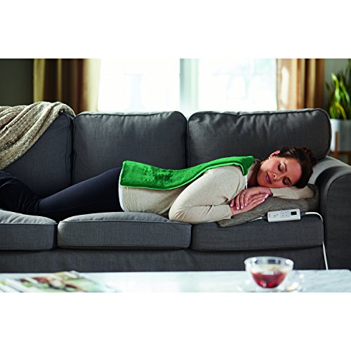 The Sunbeam XpressHeat Heating Pad heats up in as fast as 30 seconds, helping to provide quick and soothing heat relief for pains, muscle aches, strains, fatigue, and more. This electric heating pad helps increase blood flow to sore areas for muscle relaxation and faster healing. The large, soft pad can be used with dry or moist heat, and has a simple-to-use digital LED controller that lights up when it's ready to use. The extra-large pad measures 12" x 24" for easy use anywhere you need relief.Feature