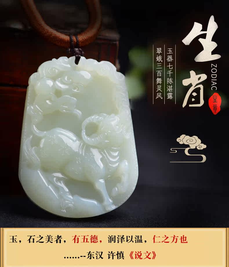 开光和田玉十二生肖吊坠属牛白玉挂件男女款项链玉坠玉佩饰品礼物