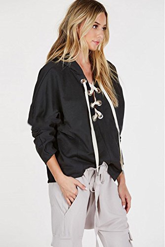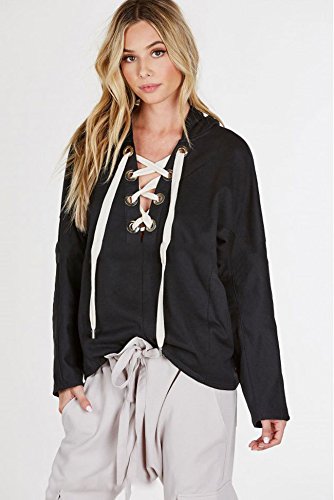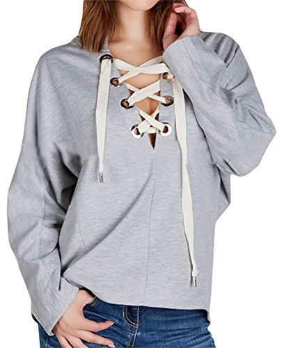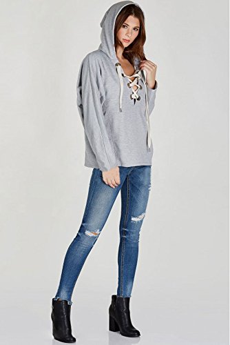 -. Feature : ゆったり デザイン で 体系カバー をしつつ 胸元 が 編み上げ になった セクシー な フード 付き パーカー / 襟 が 編み上げ になっているので、 首元 が Vネック 状 になっていて デコルテ ライン も 美しく 顎ライン が シャープ にみえる / グラックとグレーのカラーラインナップでボトムスものカラーも合わせやす