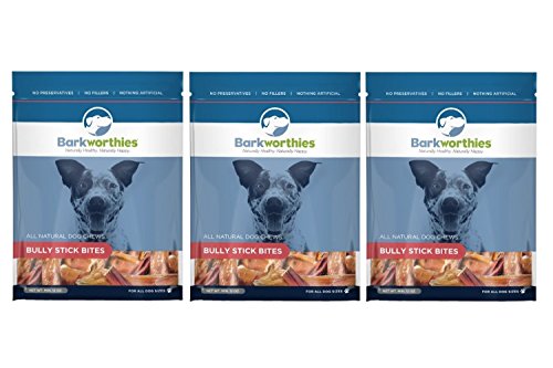 -. Binding : Misc. -. Brand : Barkworthies -. Feature : This 3-pack of bite-sized bullies in 12 oz packs is free of additives, chemicals and preservatives. / A suitable chew for small to large breeds at any stage of life / They're 100% digestible, making them a great alternative to traditional rawhide / Uniquely shaped and textured to promote good dental health while helping prevent bad doggy breath / Please supervise your pet while giving a treat or chew -. Label : Barkworthies -. Manufacturer : Barkworthies -. MPN : BARK-BULLYBITES12 -. PackageQuantity : 1 -. PartNumber : BARK-BULLYBITES12 -. ProductGroup : Pet Products -. ProductTypeName : PET_SUPPLIES -. Publisher : Barkworthies -. Studio : Barkworthies -. Title : Barkworthies Bully Stick/Bully Bites Treat, 12oz (Pack of 3)